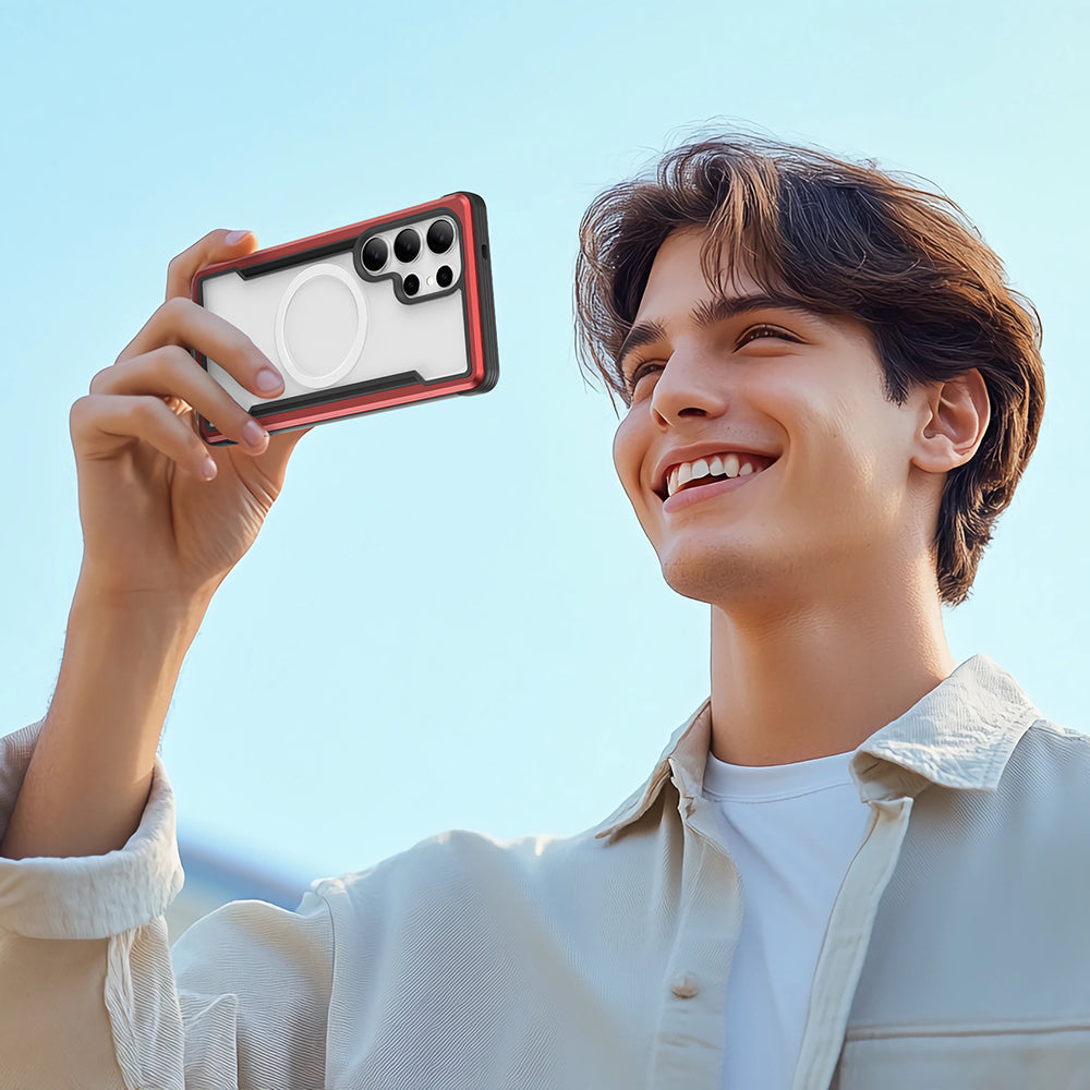Galaxy S25 Ultra Kılıf Magsafe Şarj Özellikli Airbagli Raptic Shield Serisi Şeffaf Arka Yüzey Kapak