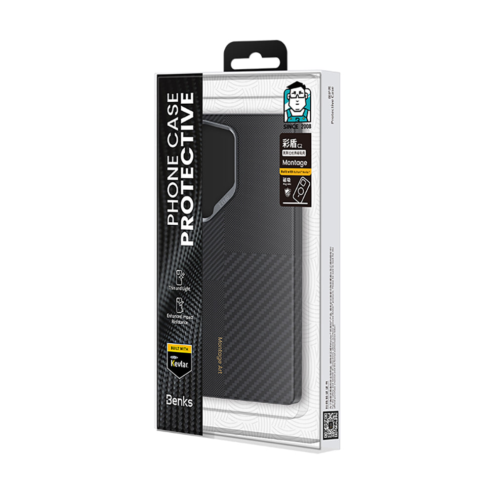 Galaxy S25 Ultra Kılıf Magsafe Şarj Özellikli Karbon Fiber Benks Montage ArmorAir Kevlar Kapak Siyah