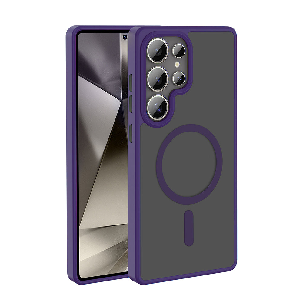 Galaxy S25 Ultra Kılıf M-safe Şarj Özellikli Mat Arka Yüzey Zore Sio Kapak Derin Mor