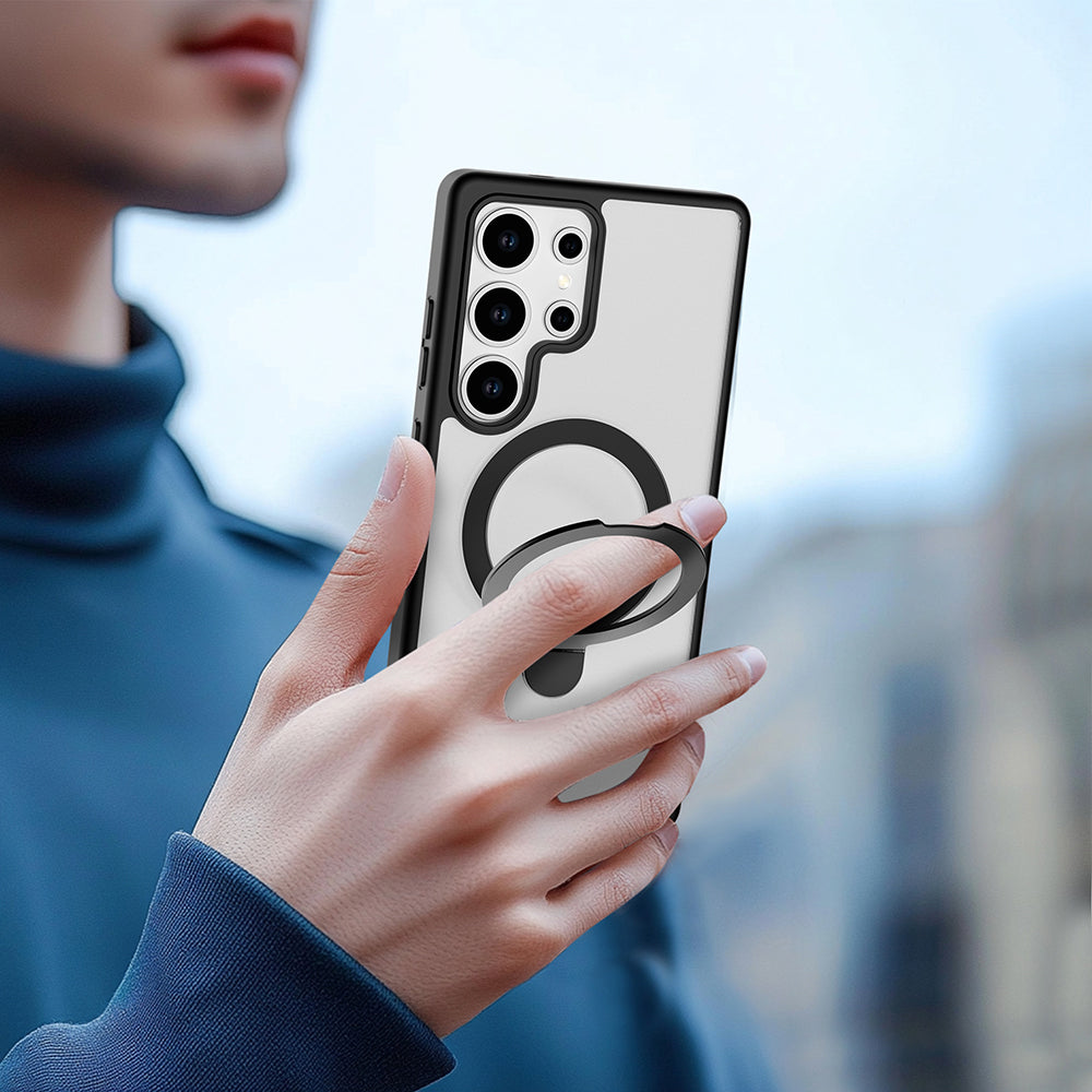 Galaxy S25 Ultra Kılıf M-safe Şarj Özellikli Raptic Air Stand Serisi Buzlu Transparan Tasarımlı Standlı Kapak Siyah