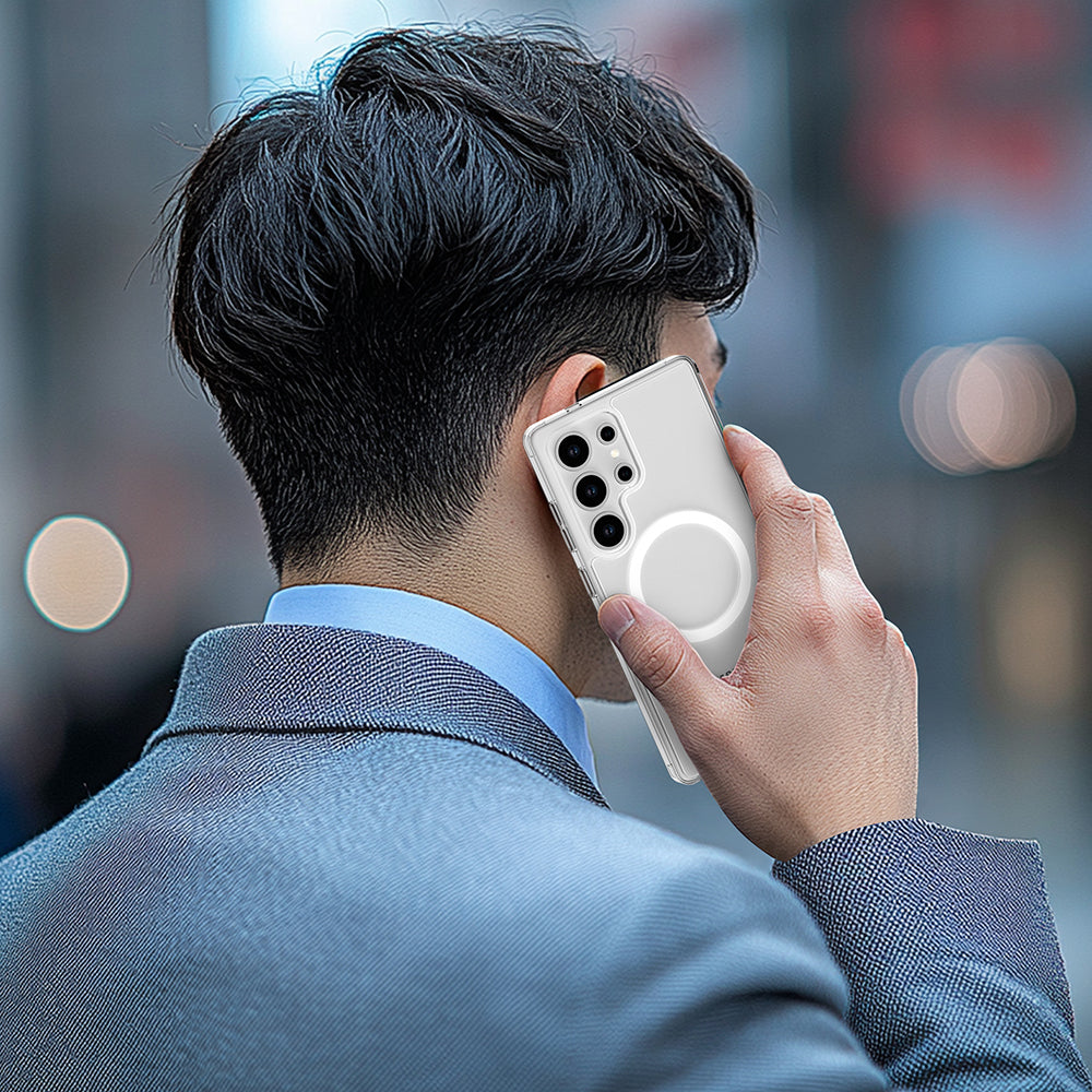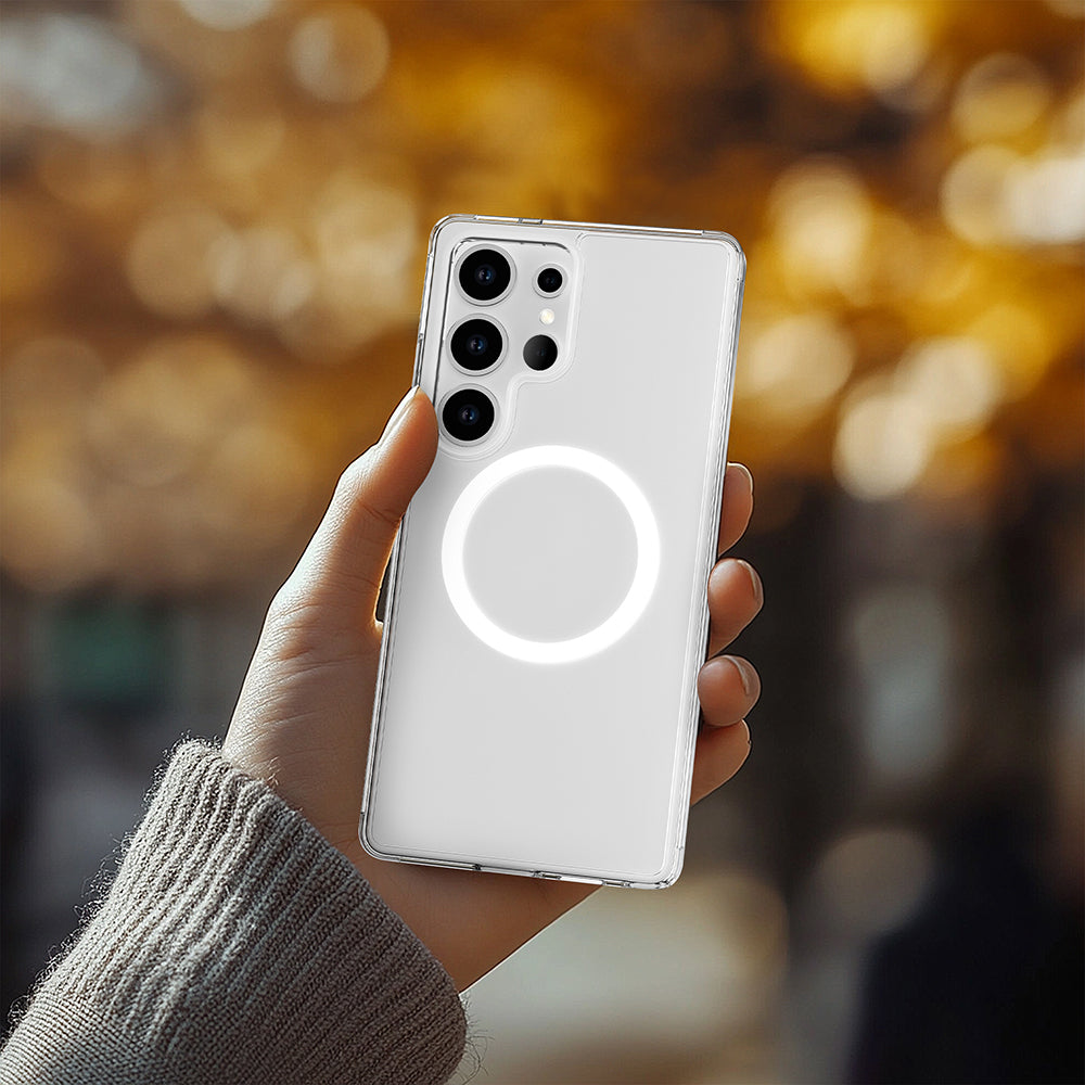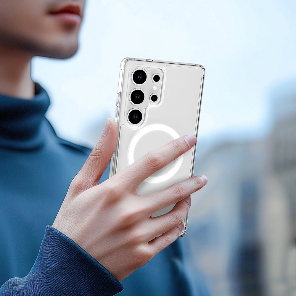 Galaxy S25 Ultra Kılıf M-safe Şarj Özellikli Raptic Crystal M-safe Serisi Şeffaf Kapak Şeffaf