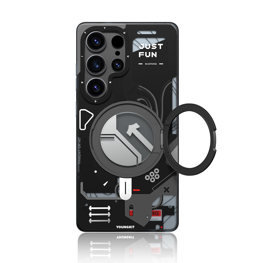 Galaxy S25 Ultra Kılıf M-safe Şarj Özellikli Youngkit 360° Standlı Starship Serisi Kapak Siyah