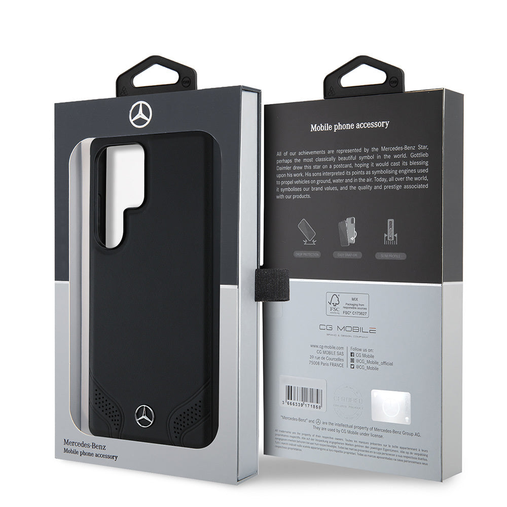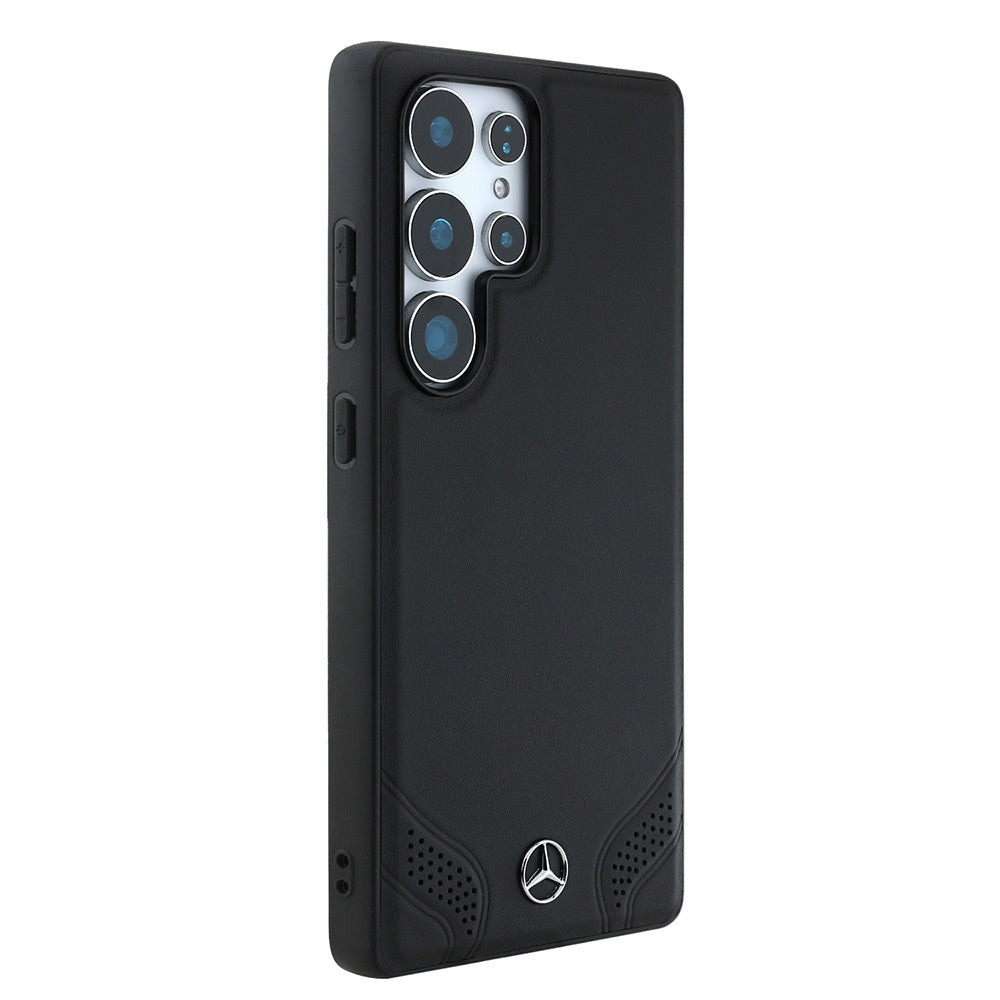 Galaxy S25 Ultra Kılıf Mercedes Benz Orjinal Lisanslı M-safe Şarj Özellikli Deri Dizayn Sade Kapak Siyah