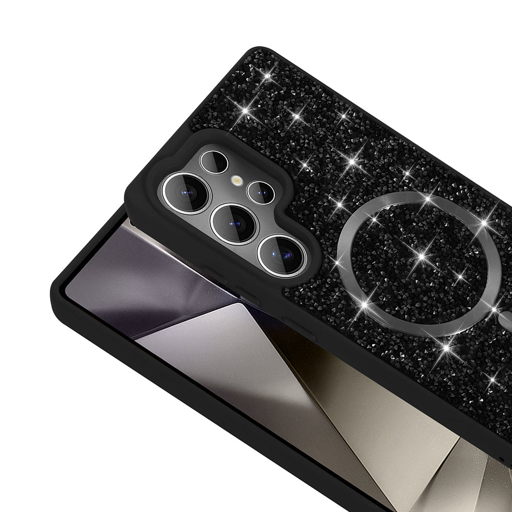 Galaxy S25 Ultra Kılıf Pırlanta Tasarımlı M-safe Şarj Özellikli Zore Mozaik Silikon Kapak Siyah