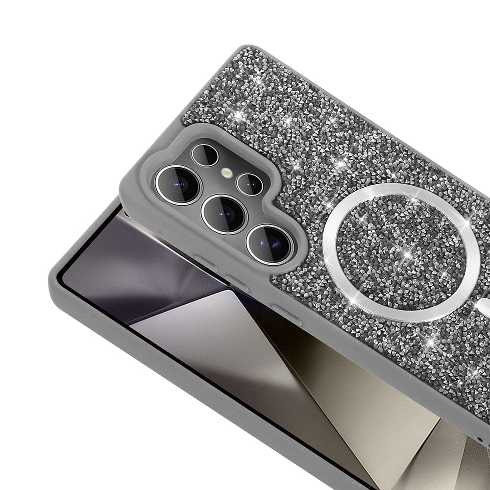 Galaxy S25 Ultra Kılıf Pırlanta Tasarımlı M-safe Şarj Özellikli Zore Mozaik Silikon Kapak Titanyum-Gri