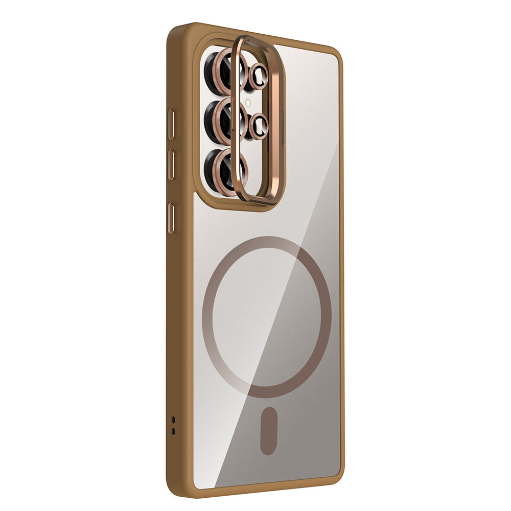 Galaxy S25 Ultra Kılıf Standlı ve Kamera Lens Hediyeli M-Safe Şarj Özellikli Zore Etro Kapak
