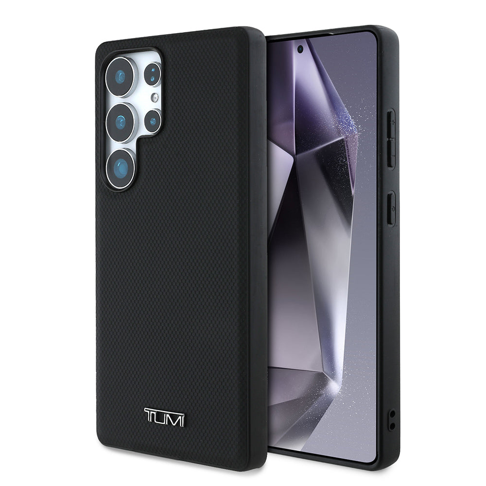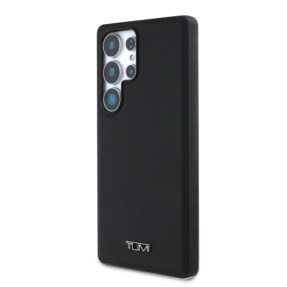 Galaxy S25 Ultra Kılıf TUMI M-safe Şarj Özellikli Deri Noktalı Dizayn Kapak Siyah