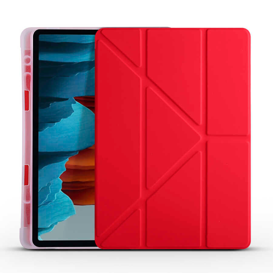 Galaxy Tab S7 Plus T970 Kılıf Zore Tri Folding Kalem Bölmeli Standlı Kılıf Lacivert
