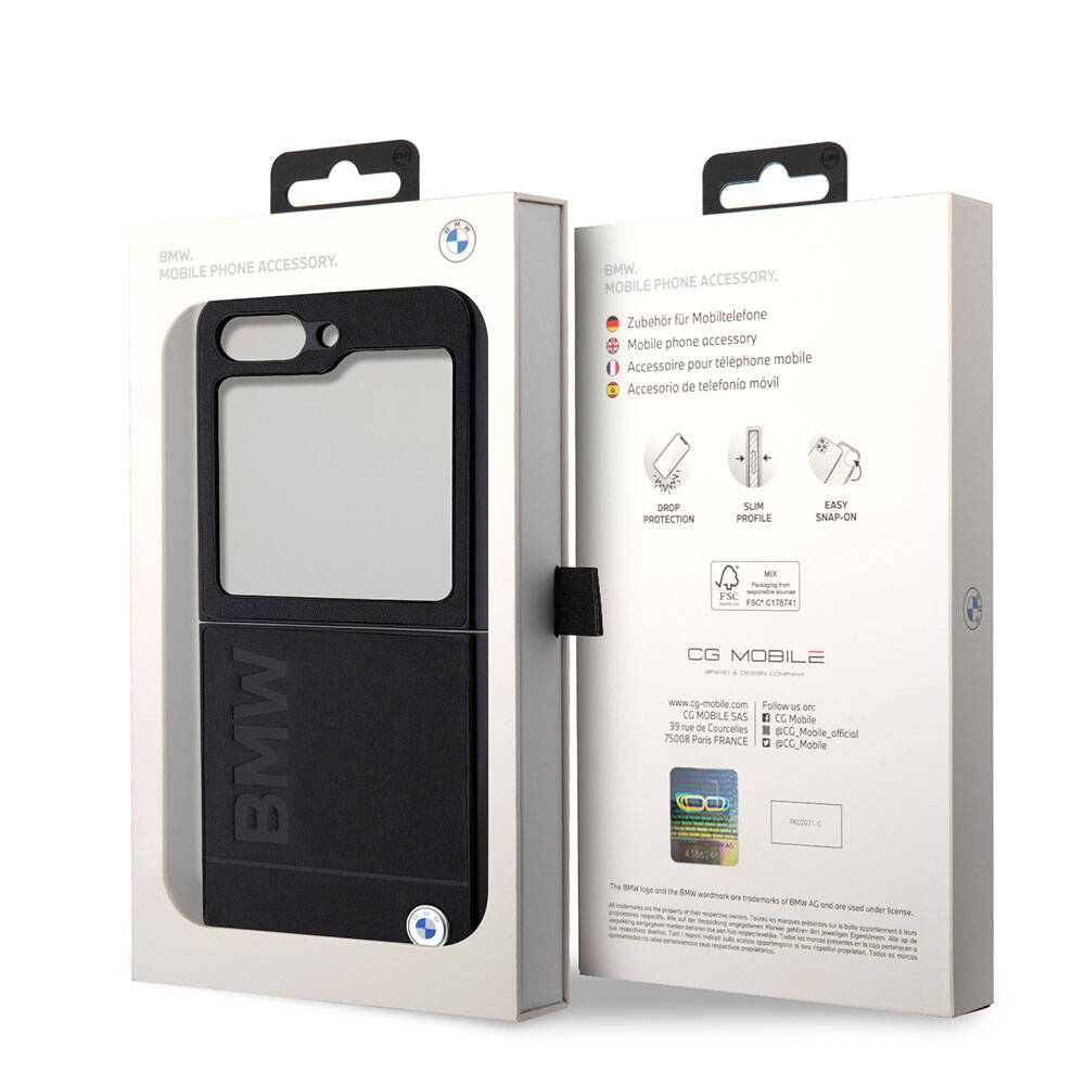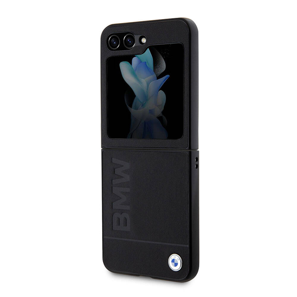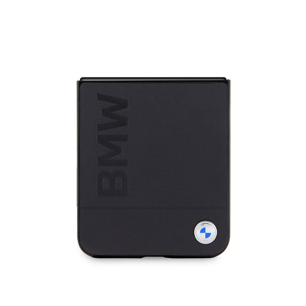 Galaxy Z Flip 5 Kılıf BMW Orjinal Lisanslı Sıcak Damga Logolu Deri Kapak Siyah