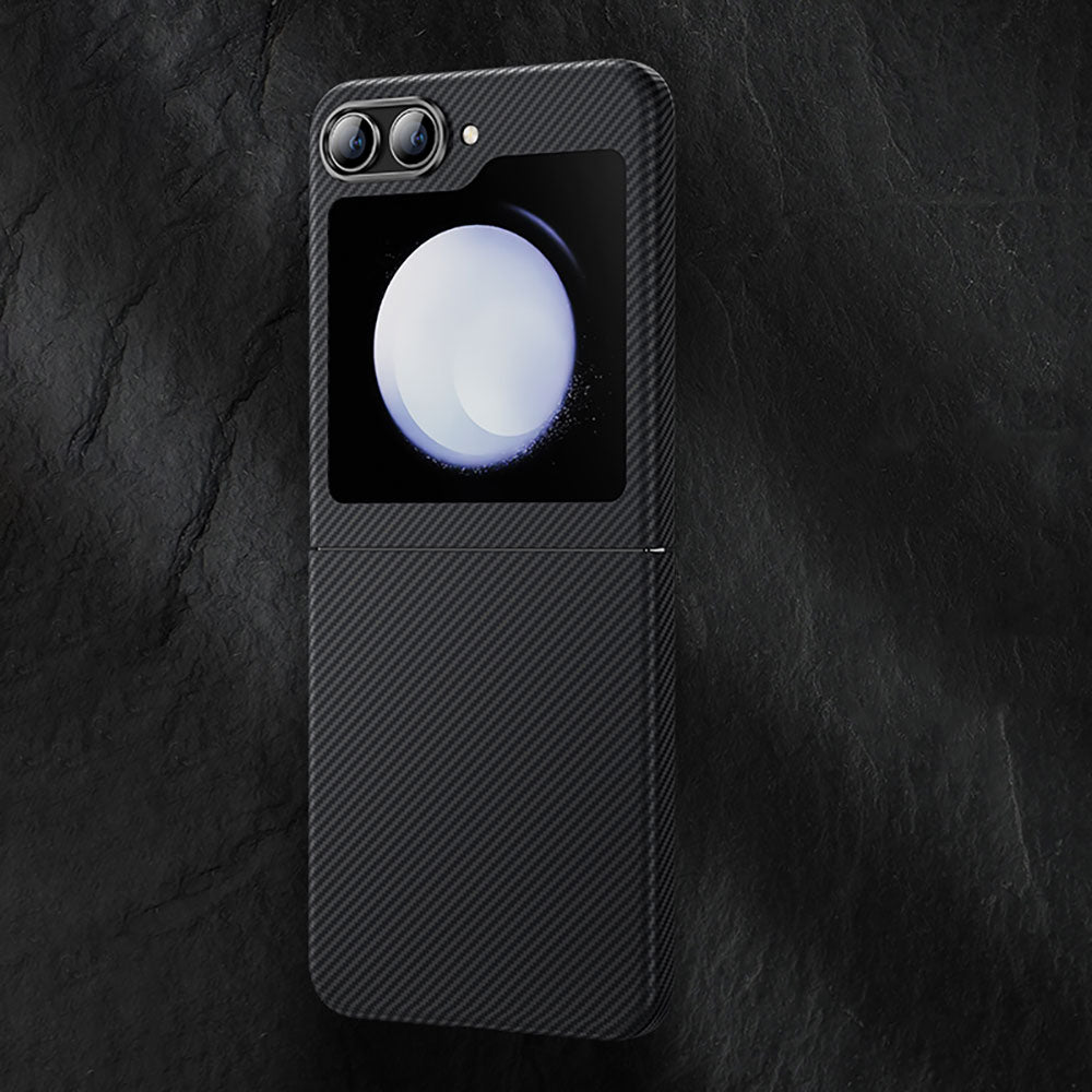 Galaxy Z Flip 5 Kılıf Karbon Fiber Benks Essential ArmorAir 600D Kevlar Kapak Siyah