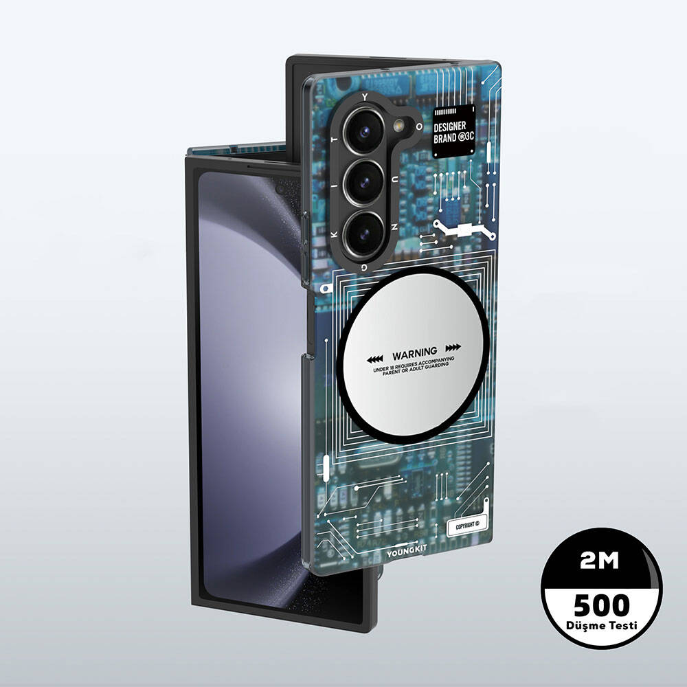 Galaxy Z Fold 6 Kılıf Magsafe Şarj Özellikli Youngkit Technology Serisi Kapak Siyah