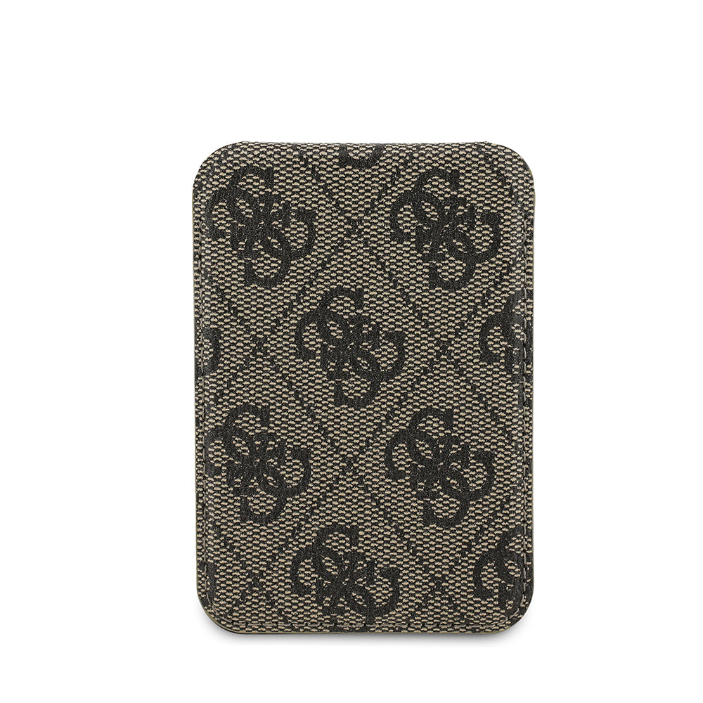 Guess Orjinal Lisanslı PU Deri 4G Desenli Metal Büyük 4G ve Yazı Logolu Standlı Magnetik Kartlık Siyah