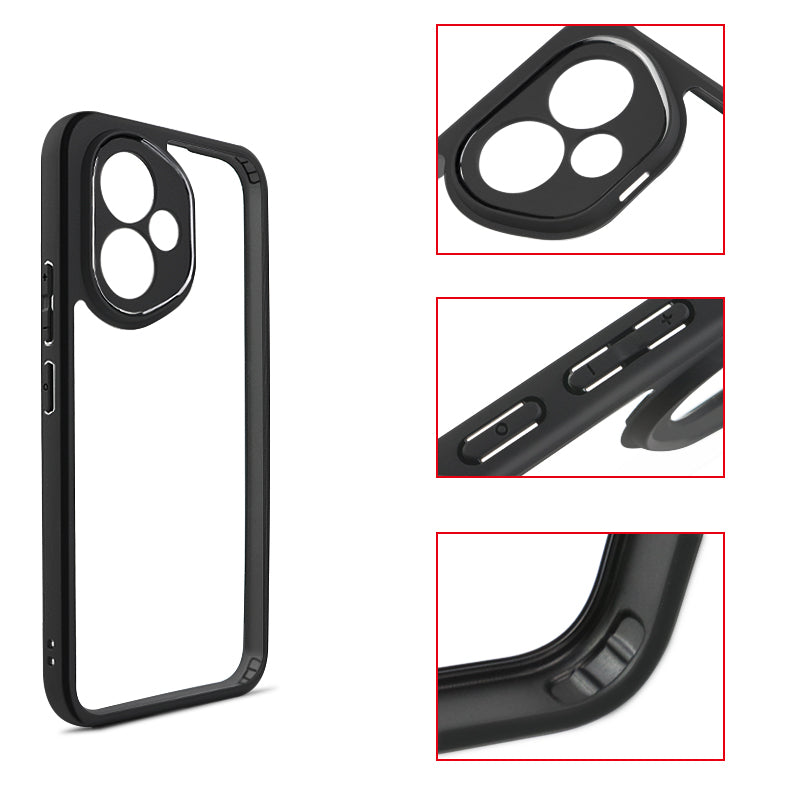 Honor 400 Kılıf Kamera Korumalı Şeffaf Arka Yüzey Zore New Roll Kapak Siyah