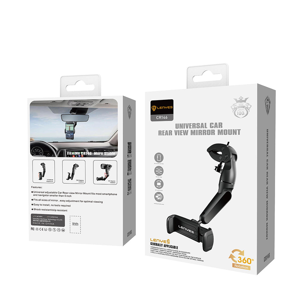 Lenyes CR146 360 Dönebilen Oynar Başlıklı Dikiz Ayna Araç Telefon Tutucu Siyah