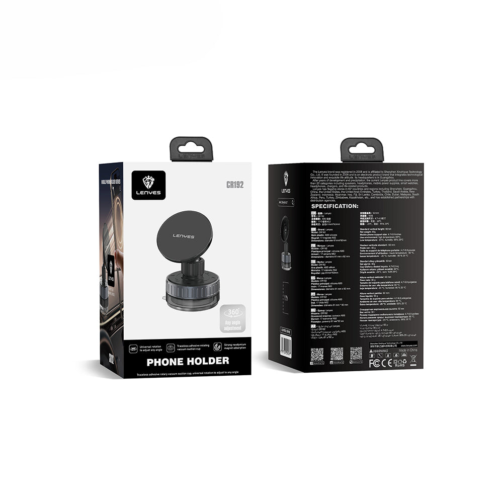 Lenyes CR192 Vakum Özellikli 360 Derece Dönebilen Magnetik Telefon Tutucu