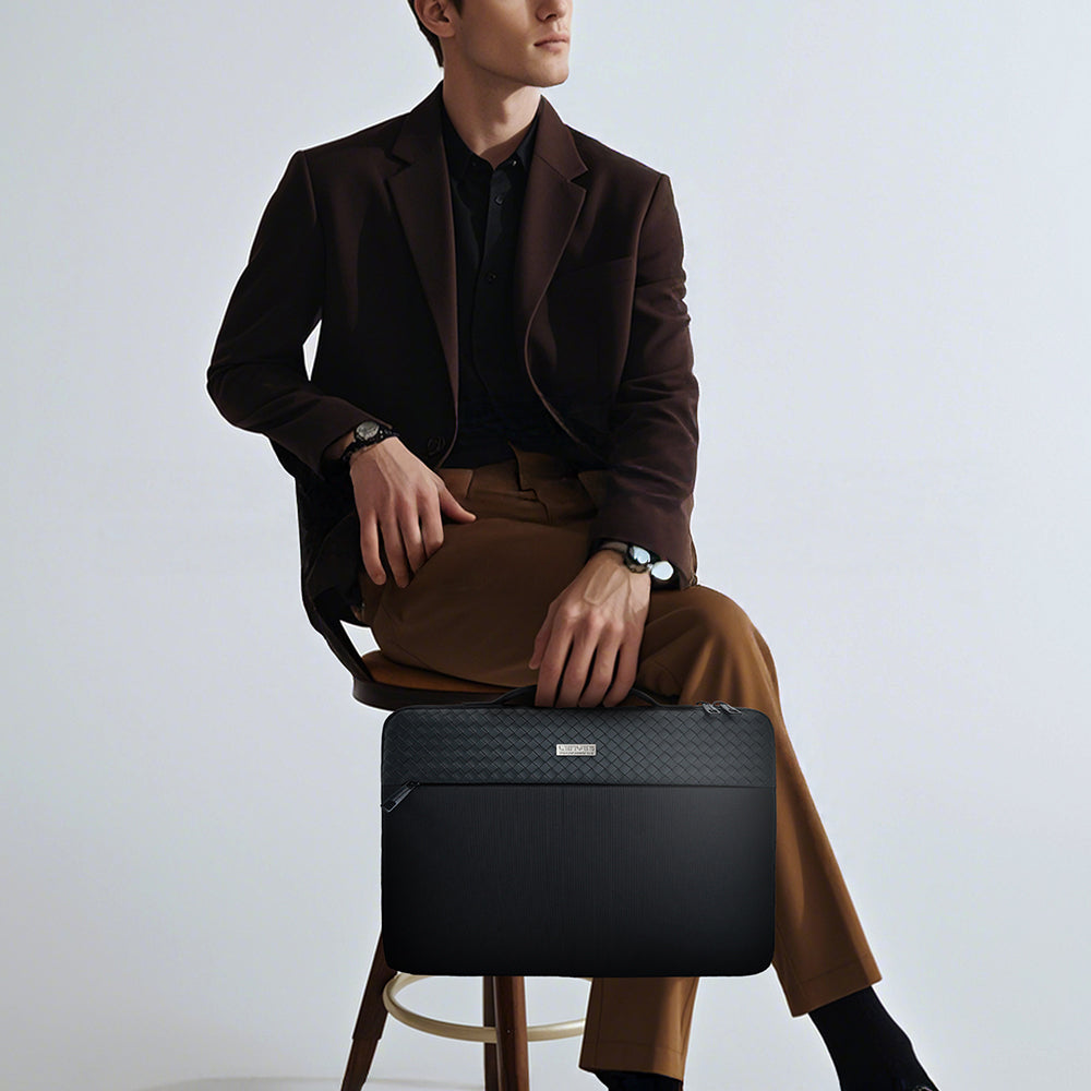 Lenyes LB556 Voyagers laptop çantası, dokuma detaylı modern tasarımı ve microfiber kaplamasıyla iş dünyasına ve günlük kullanıma şıklık katar. İnce yapısı ve hafifliği sayesinde hem ofis ortamında hem de seyahatlerde yanınızda taşırken estetik bir duruş sergiler. Toplantılara giderken veya dışarıda çalışırken profesyonelliğinizi ön plana çıkarır.