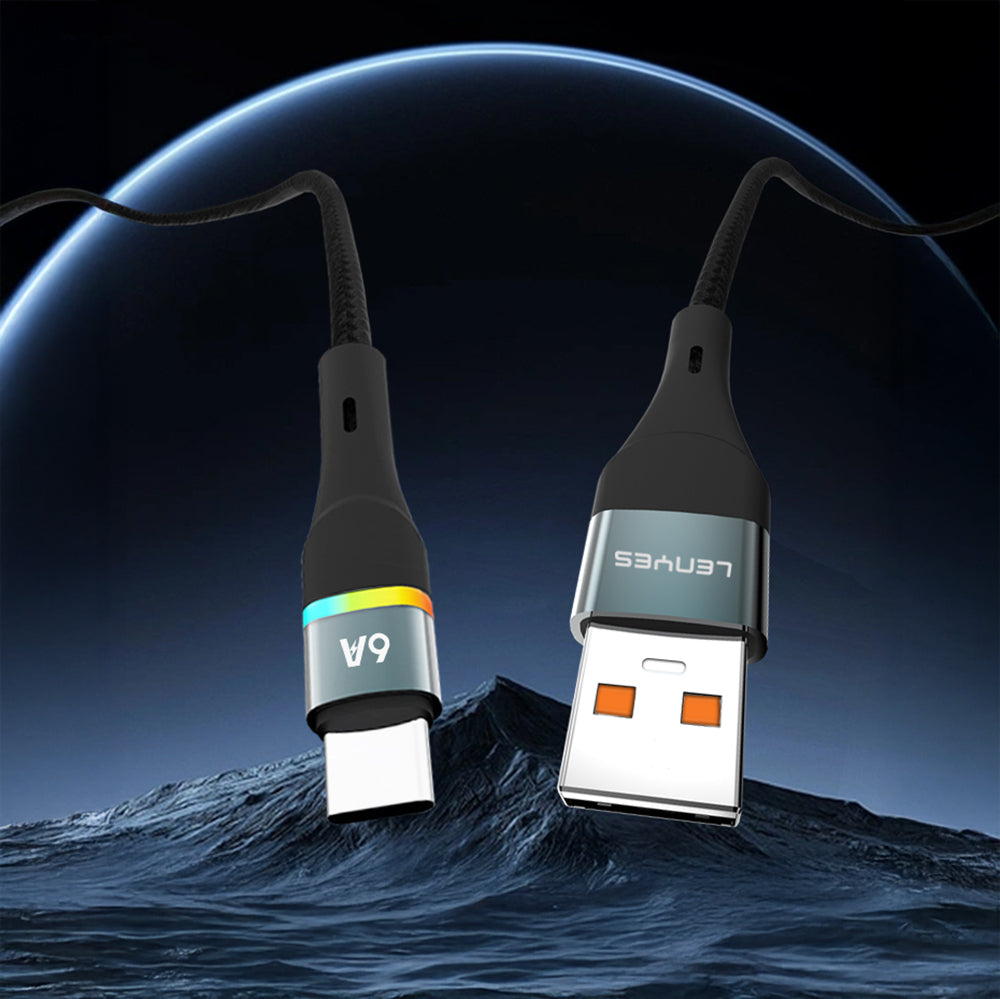 Lenyes LC520, USB-A'dan Type-C'ye bağlantı noktaları sayesinde birçok farklı cihazla uyumludur. Akıllı telefonlar, tabletler ve daha birçok cihazı tek bir kabloyla şarj edebilirsiniz. 1 metre uzunluğundaki bu kablo, günlük kullanım için ideal bir mesafeye sahiptir. Renkli aydınlatması sayesinde geceleri kolayca bulunabilir ve şarj işlemini daha eğlenceli hale getirir.