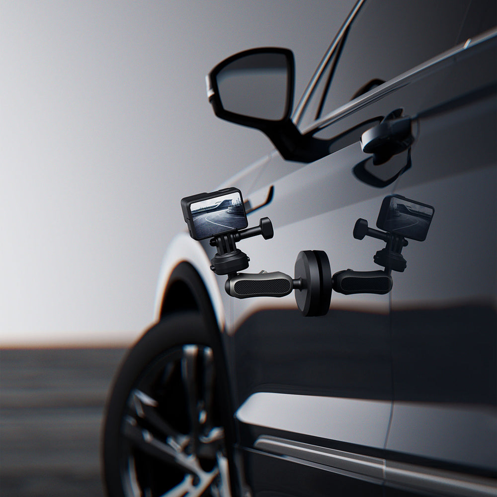 Çift bilyeli 360 derece dönebilen yapısı sayesinde çekim açılarını tamamen özgürleştirir. Üstten aşağıya, soldan sağa her açıyı kolaylıkla yakalayabilirsiniz. Üstelik kompakt boyutlarıyla çantanızda yer kaplamaz, dilediğiniz yere kolayca taşıyabilirsiniz. Aracınızın dış yüzeyinde yüksek hızlarda dahi güvenli bir şekilde kullanabilir, şehir içi veya doğa gezilerinde aksiyon kameranızı kusursuz bir açıda sabitleyebilirsiniz. Sizi sadece sınırlarınız durdurabilir