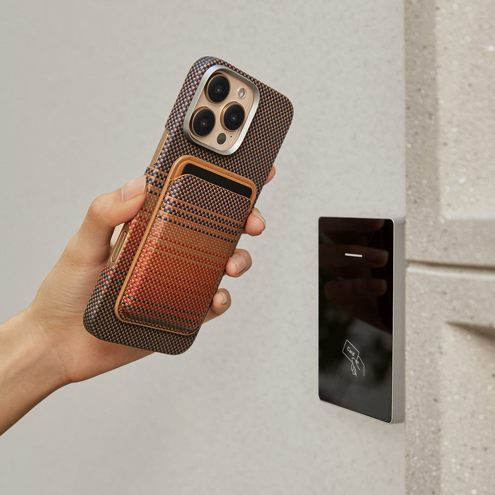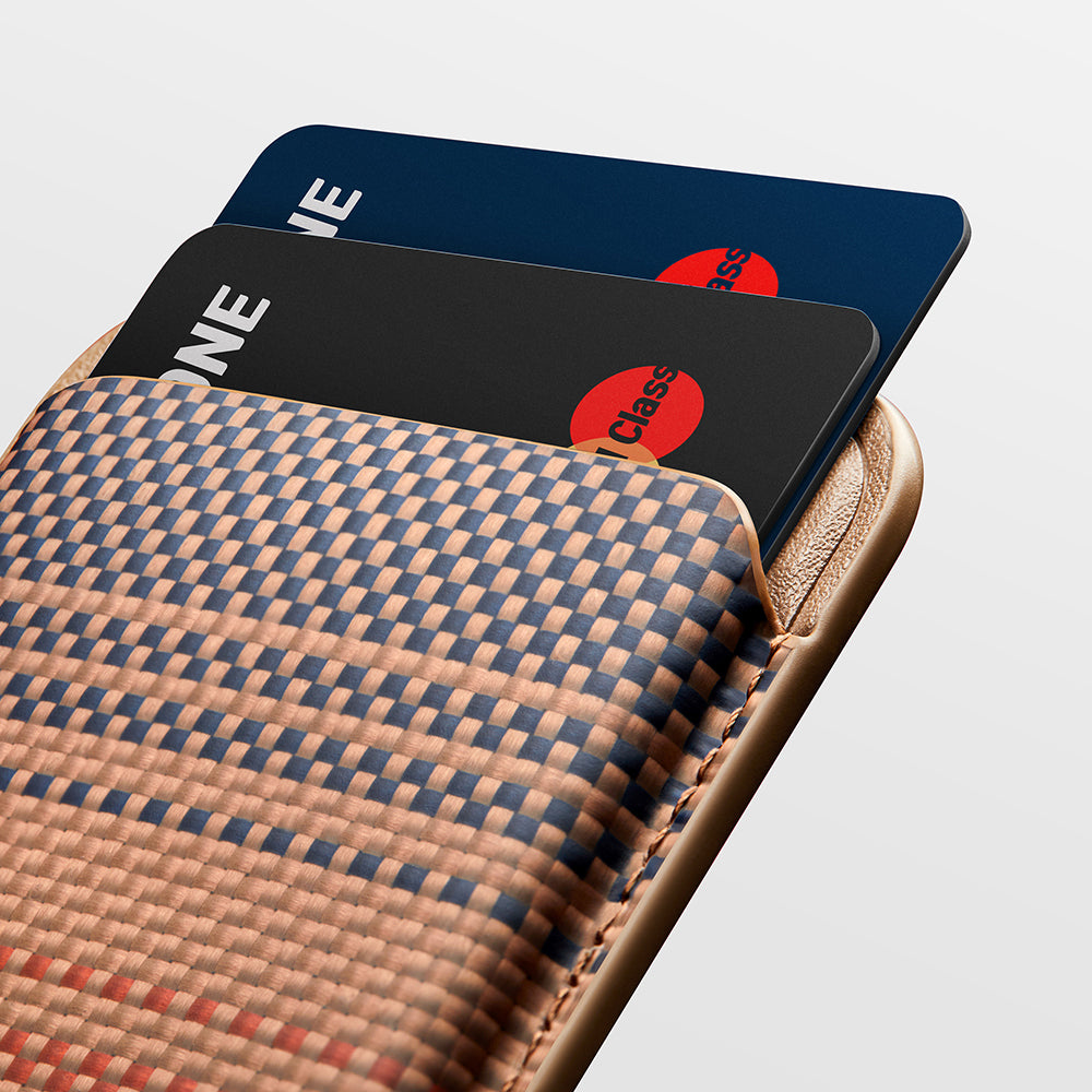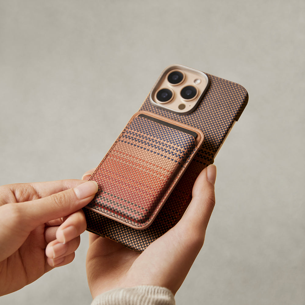 Sadece 38 gram ağırlığıyla neredeyse hissedilmeyecek kadar hafif olan bu kartlık, ultra ince yapısıyla telefonunuzun kalınlığını artırmadan kullanım sunar. Özel Cadmyra™ aramid fiber dokusu, hem dayanıklılığı hem de şık dokusuyla fark yaratır. Minimalist çizgilerle tasarlanmış yapısı sayesinde modern iş tarzınıza da mükemmel uyum sağlar. Günlük kombinlerinizle, toplantı stilinizle veya dış mekân aktivitelerinizle kolayca bütünleşir.