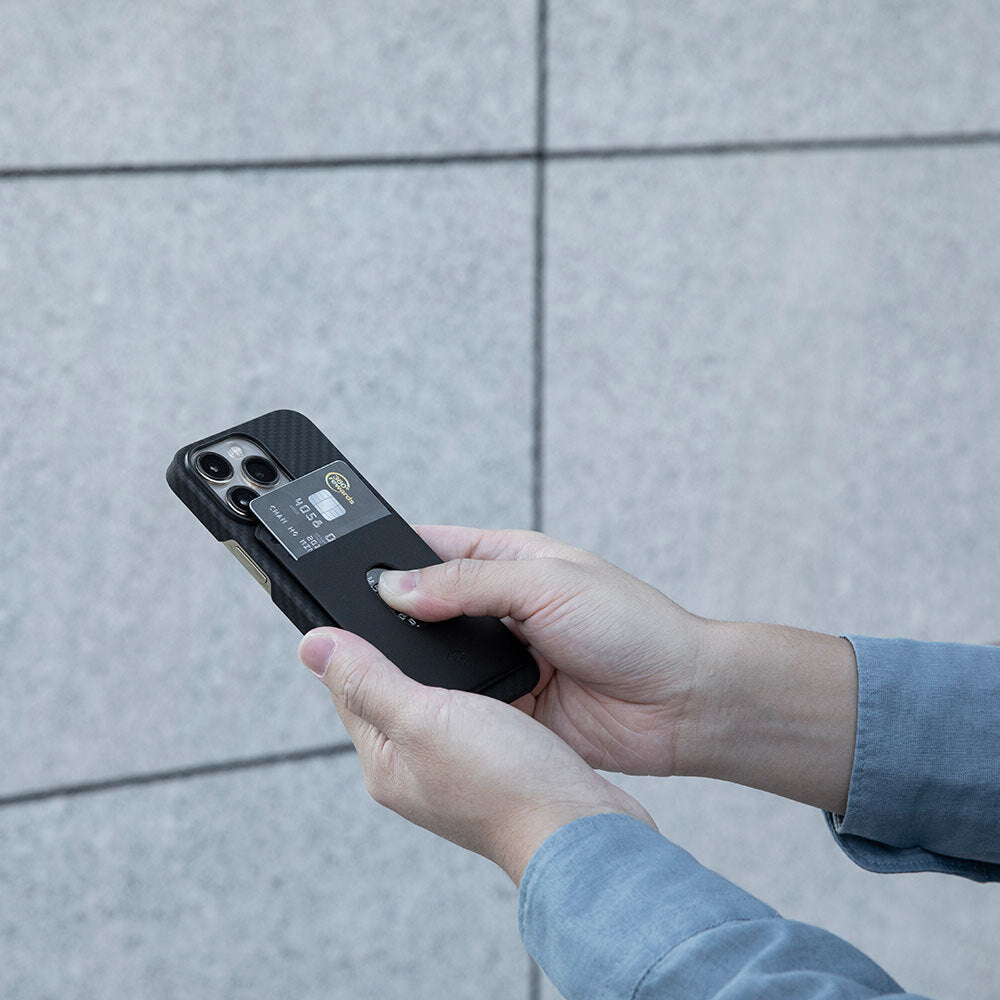 Pitaka MagEZ Card Sleeve 3.0 ile Akıllı telefonunuza zarif bir kart saklama alanı kazandırın, hem şık hem de kullanışlı bir aksesuarla hayatınızı kolaylaştırın.