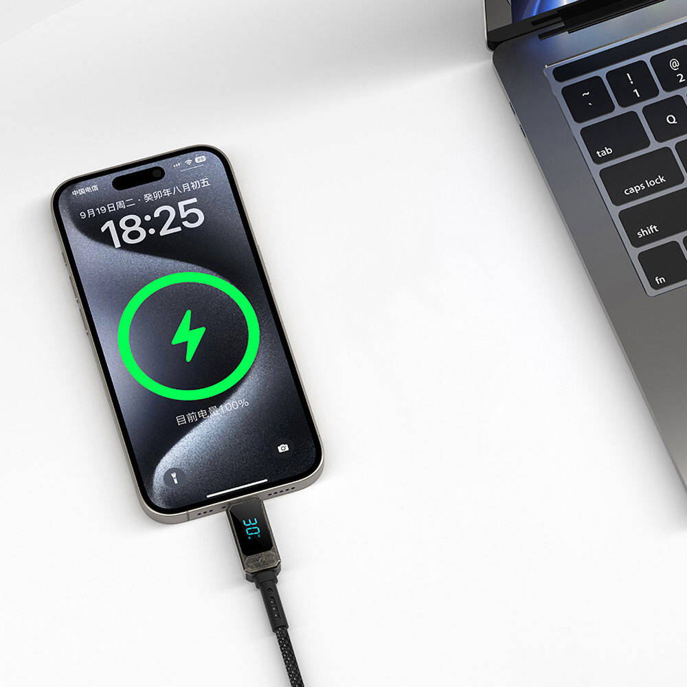 Wiwu Wi-C038 Titan Serisi Lightning to Type-C PD 30W LED Dijital Göstergeli Şarj ve Data Kablosu 1.2M Siyah