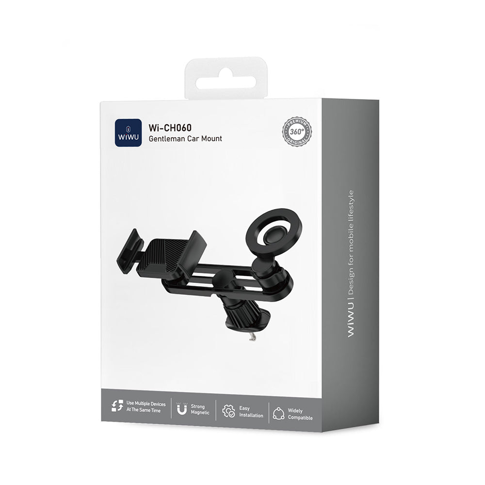 Wiwu Wi-CH060 Gentleman Serisi 360 Derece Dönebilen 2in1 Araç Telefon Tutucu Siyah