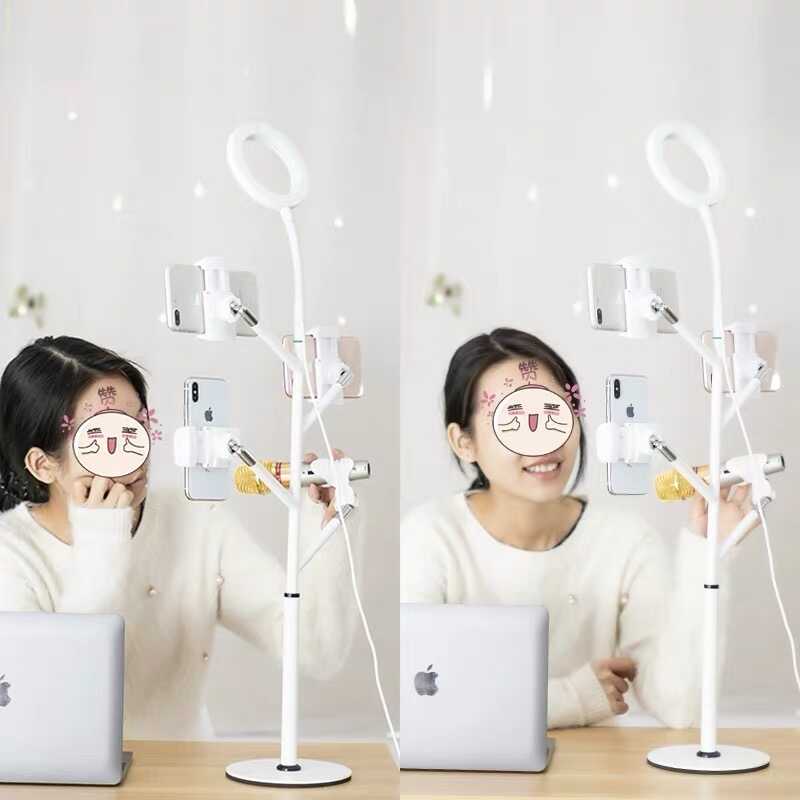Işık halkası, 3 adet telefon tutucusu ve 1 adet mikrofon tutucu içeren 5 li boyun dizaynı