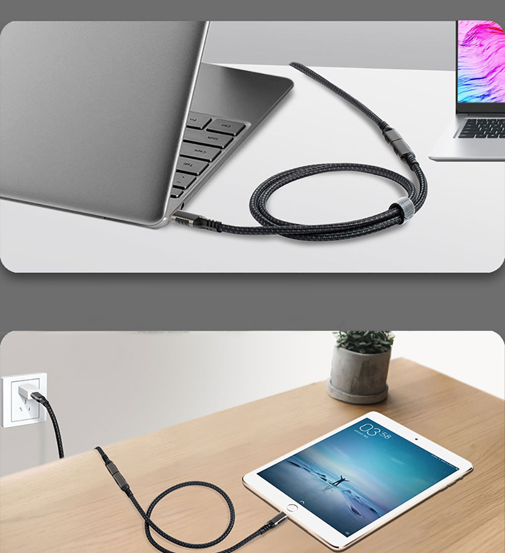 Zore Extension, şarj deneyiminizi bir üst seviyeye taşımak için tasarlandı! Bu hızlı şarj kablosu, Thunderbolt 3, USB-C ve DisplayPort cihazlarınıza video ve veri göndermek için herhangi bir USB-C'ye bağlanmanızı ve uzatma yapmanızı sağlar.